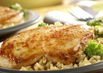 15 Minute Chicken & Rice Dinner is such an easy recipe that is ready in less than 20 minutes. Just two of the reasons why it is popular in my house. The other reasons are the amazing flavour and how filling it is. This main dish serves 4 people easily and only uses on pan so win, win, win basis. The sauce is Cream of Chicken Soup which is also used to cook the rice so it has an outstanding flavour.