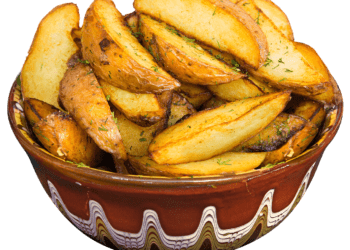 Baked Chunky Chips is the easiest method to turn boring potatoes into gorgeous delights. This recipe only has four ingredients and two of those are seasoning. I make these as a side dish and as a snack served with a choice of dips. I like to leave te skin on the chips giving a lovely crunch to every bite.