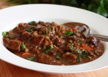 Beef, Barley and Mushroom Casserole is a lovely collection of flavours and textures that works so well together. The barley adds so much body to this dish and absorbs so much flavour, its brilliant. The traditional pairing of beef and mushrooms always work and they certainly do in this dish. Serve as a main dish with rice or potatoes for a hearty meal.