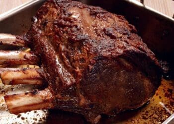 Beef rib roast is traditionally served “au jus,” a French term meaning served in its own juices.