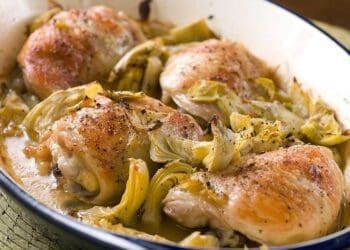 Chicken Breasts with Artichoke Hearts are a perfect marriage. The blend of flavours between the moist chicken, white wine, stock, herbs and the yoghurt are perfect. However add the artichoke hearts and the dish goes up a level. This main dish is full of sperate flavours that compliment each other. If you haven’t tried artichoke hearts before then this is a brilliant recipe to start with.