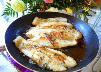 - Dredge the fish fillets in the flour mixture, shake off the excess, and saute in the butter and oil mixture until golden brown on both sides and cooked through.1/2 cup flour