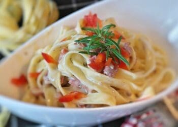 Ham and Cheese Linguine is a delightful simple recipe that is suitable for all of the family. I use baked ham for this recipe but any meat especially prosciutto works well. A simple Italian main dish ready from start to the table in only 20 minutes. I love linguine and use it for this recipe. However, spaghetti, farfalle, conchiglie are also ideal.