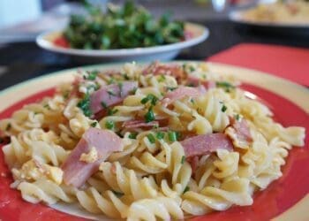 Ham and Pasta Leftovers is a simple and flavourful recipe to use up leftover ham. Heating it up in water and then cooking the pasta and veg in the same pan creates a mix of flavours that’s mesmerising. The pasta has an amazing flavour from the veg and ham which makes this dish brilliant. Serve as a main dish for a lot of happy people.