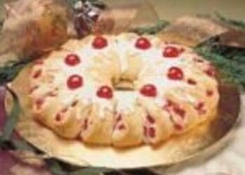 A Holiday Coffee Cake is a strange name for a cake that doesn’t contain coffee and is made all year round. Apart from that, this tastes amazing. The maraschino cherries add that magical sweetness that every cake should have. Serve with a mug of coffee for a superb break of even as a dessert.