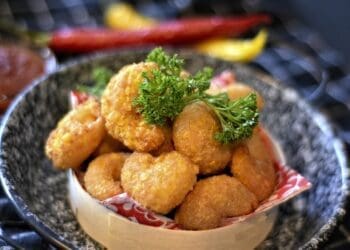 - Dip the scampi in to the beaten egg and salt, then into the flour and black pepper and then finally into the breadcrumbs making sure you shake off any excess after each stage.