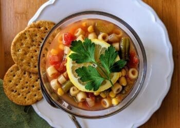 Homemade Minestrone Soup is a dish that brings back childhood memories of cold days. Especially that feeling when you get home and smell the soup. I use seasonal vegetables and cook this all year but always serve it with homemade garlic bread. I use bacon as a background flavour but remove this and you have a superb vegetarian dish. Serve as a main dish, snack, soup and even a starter.