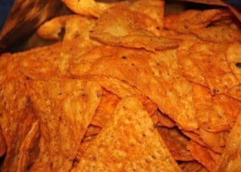 Homemade spicy nachos are one of my favourite dippers. They are strong enough to scoop yet soft enough to nibble. I add paprika and chilli powder for the kick and adjust it according to who is around. This lovely Mexican recipe is perfect as a snack, or covered with melted cheese and salsa for a starter or main course.