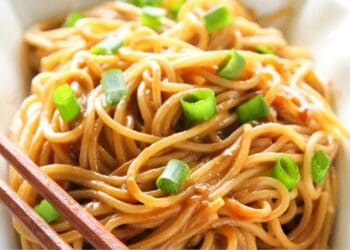 Noodles with Peanut Sauce – What an ideal recipe. The simplicity of this recipe and the fast 15 minute cooking time makes this ideal for those on the go. Also ideal as part of a homecooked Chinese meal. The subtleness of the ingredients binds everything together to make a sublime meal. The ingredients list includes a number of optional items that can be added to make the dish your own.