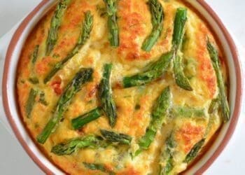 A Simple Asparagus Frittata is a beautiful vegetarian dish that is filling, tasty and ready in less than 20 minutes. The addition of the parmesan to the eggs creates a deep thick mix perfect for holding the asparagus. Include the sweetness of the shallots and hey presto you have a superb main dish. The frittata is best served hot or room temperature.