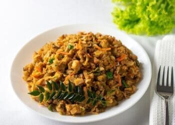 Sri Lankan Coconut Kottu is a flavourful and aromatic dish made with shredded coconut roti stir-fried with an assortment of vegetables, spices, and protein, creating a hearty and satisfying meal bursting with tropical flavours.