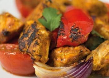 Tandoori Chicken and Vegetables is a very simple dish that I love. It’s not just the flavour, but the enticing aroma and mouth watering presentation. This Indian dish is always popular at restaurants and takeaways but why not make it yourself? It means that you can adjust the seasoning so it’s perfect for you and the process is so easy and straight forward.
