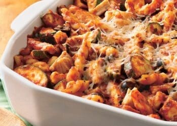 Turkey Rotini Casserole is a lovely variation on pasta bake. This recipe uses rotini pasta which is similar to fusilli. This is an ideal recipe to use left over turkey or chicken and adding crumbled tortilla crisp over the top adds a brilliant topping. Serve as a main dish either on its own or with vegetables.