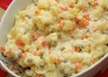 Uruguayan Potato Salad – Ensalada Rusa is lovely recipe that is delicate yet filling as a side dish. This recipe is different as Carrots and Peas are mixed with the potatoes for added flavour and texture. Also both Mayonnaise and Sour Cream are included in the recipe. This is not healthy but worth it.